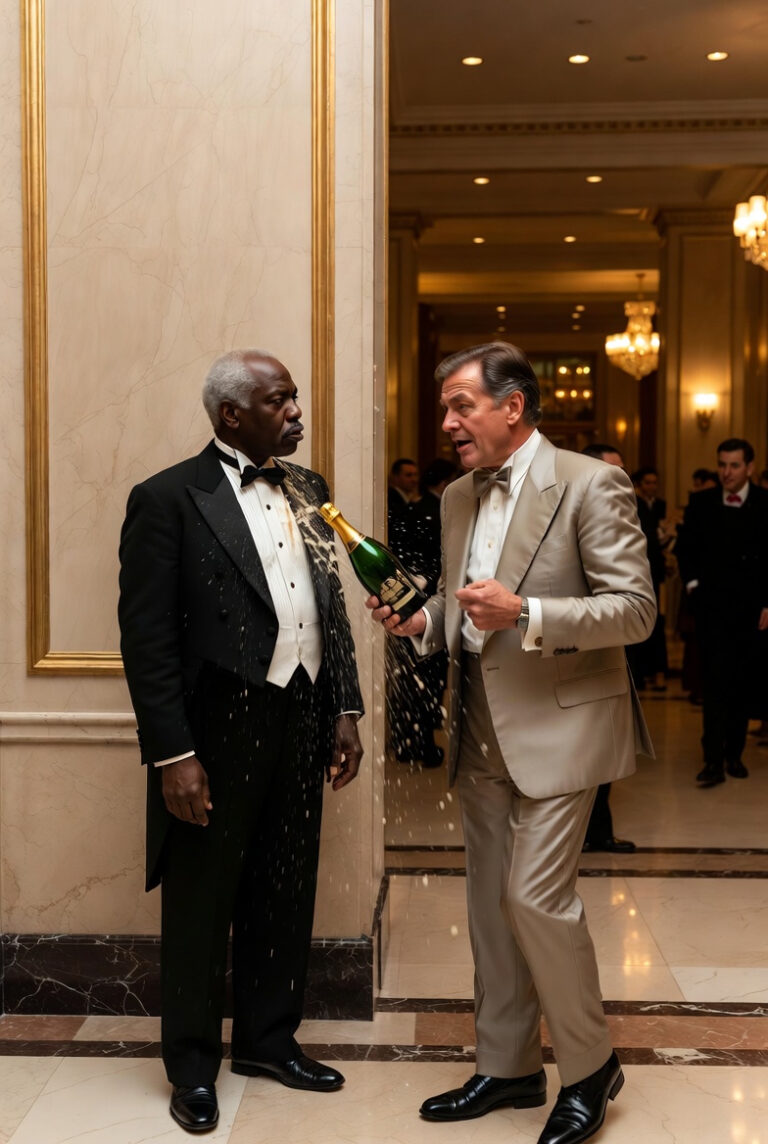 The ice-cold champagne soaked right through my late father’s tuxedo lapel, sticking to my skin, but it was the billionaire’s cruel laugh that actually made...