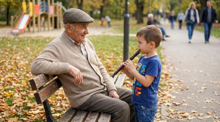 Frank, a widowed retiree sitting alone in a park, is approached by Mason, a curious 7-year-old boy. What begins as an innocent “interview” about the...