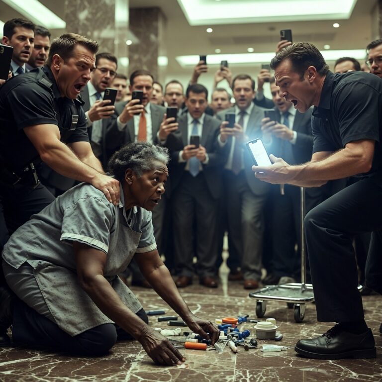 I stared at the polished marble floor, watching the contents of my canvas bag scatter everywhere as the head of security, Brad Stevens, roughly shoved...