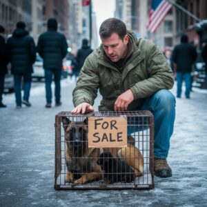 They left her on Fifth Avenue in a frozen cage with a sign that said “FOR SALE,” thinking she was just damaged goods. They didn’t know a retired Navy SEAL was the one who would find her. 94 days after leaving the service, I wasn’t looking for a mission, but when I saw how she protected those puppies while the city walked by, I knew. This wasn’t about adoption. This was an extraction.