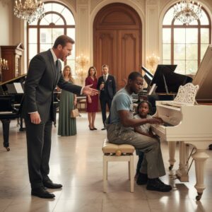 “You couldn’t afford the bench in three lifetimes,” he sneered, looking at my dirty jeans. My 7-year-old was sobbing, begging to leave. Instead of walking out, I sat at the grand piano and played a song that destroyed him.