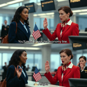 He Shoved A “Dirty” Woman Out Of Her First-Class Seat. Then She Stood Up And Revealed Her Four Gold Stripes.