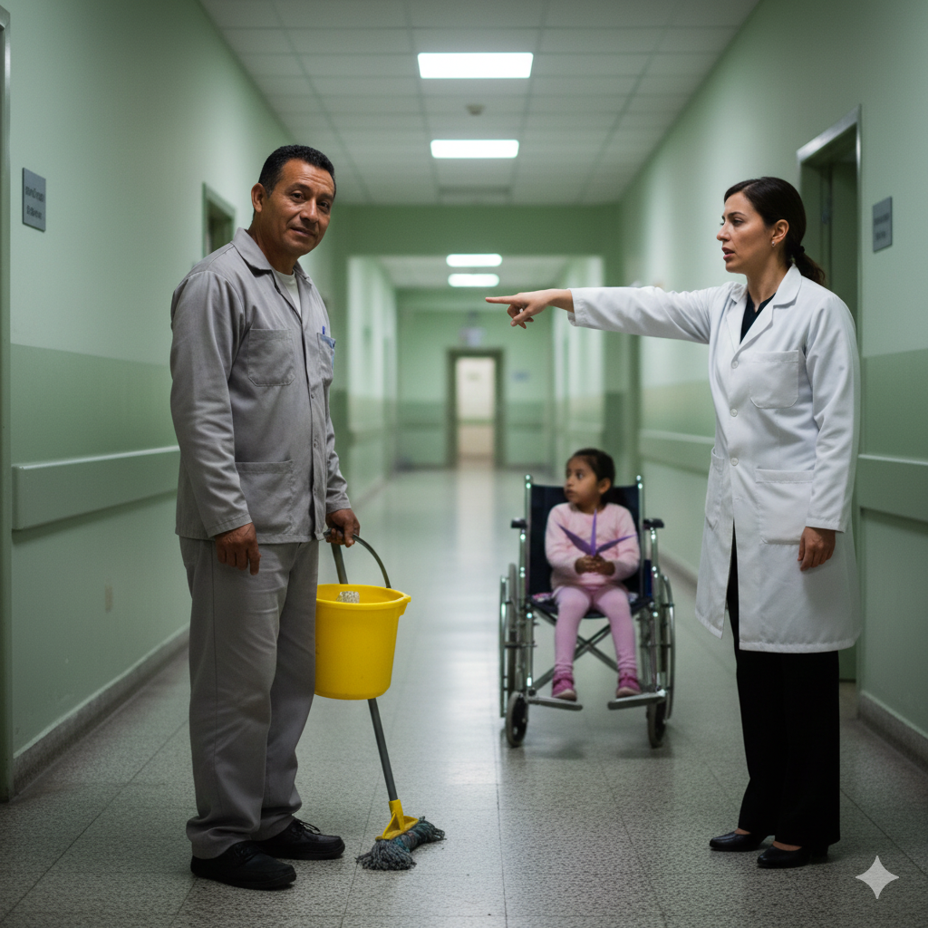 El balde del trapeador todavía goteaba agua con cloro cuando Marcos comenzó a guardar sus cosas con las manos temblorosas. “Estás d3sp3dido”, la voz de la Dra. Elizondo resonó con la frialdad del mármol en aquel lujoso hospital de la CDMX. Tres guardias de seguridad se acercaron, bloqueándole el paso como si fuera un cr_m_n_l. “Recoge tus porquerías y lárgate de aquí ahora mismo”.