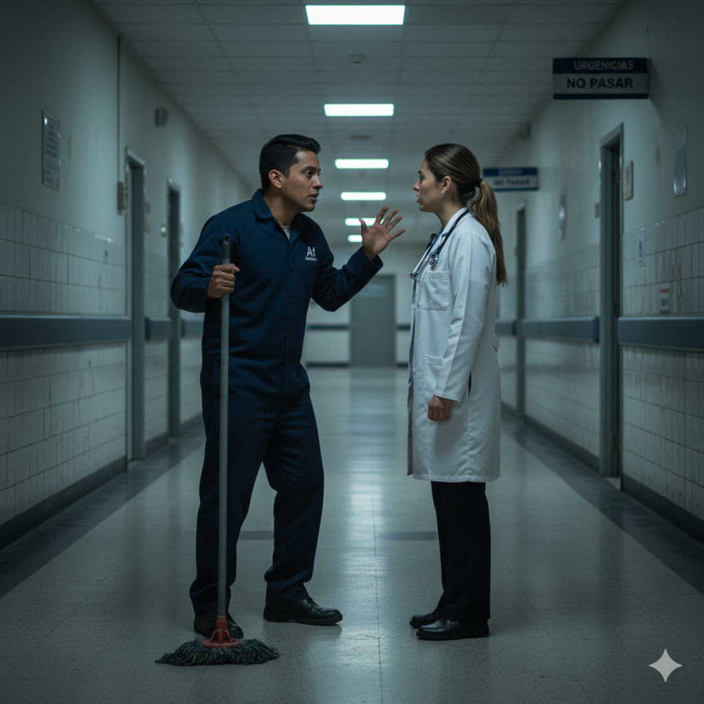 En ese momento, el Doctor Mendoza, el jefe de urgencias, se acercó con ese aire de superioridad que tienen los que creen que el uniforme lo es todo. —¿Qué está pasando aquí? Estrada, ¿por qué pierdes el tiempo hablando con el personal de limpieza sobre un diagnóstico? —soltó una risa seca y amarga—. Mateo, regresa a tu pasillo. Zapatero a tus zapatos. Aquí salvamos vidas con ciencia, no con cuentos de barrio.