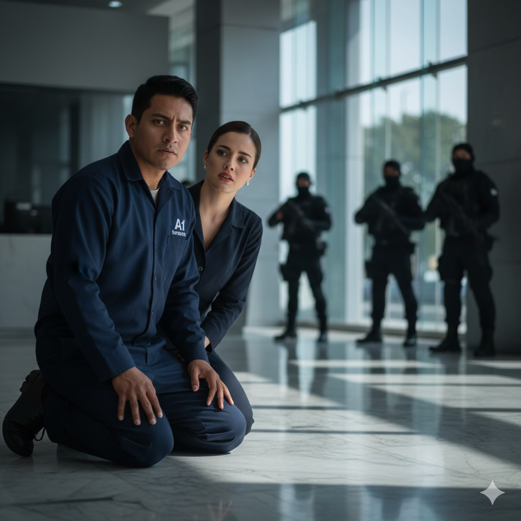 Estaba en el suelo. El mármol frío de la sucursal de Paseo de la Reforma se hundía en la seda de su blusa, y el aire se sentía denso, cargado de ese olor metálico a miedo y desinfectante barato. Giró la cabeza apenas una fracción de pulgada. El hombre que yacía a su lado era el de la limpieza. Lo había visto cien veces en este mismo banco: un espectro con un carrito y un trapeador al que nadie se molestaba en saludar.