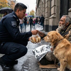Mientras la gente caminaba rápido viendo a un anciano y a su perro como un estorbo en el asfalto frío, un oficial de policía decidió no mirar hacia otro lado. En medio de una tormenta implacable y un viento feroz, el oficial Martínez se acercó con pan caliente y una manta. Lo que hizo el perro después te conmoverá y te recordará el poder de la gratitud.