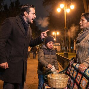 El billete arrugado flotaba entre sus pequeños dedos como una ofrenda desesperada. Temblaba, pero no por el viento helado de esa noche de diciembre en la ciudad,…