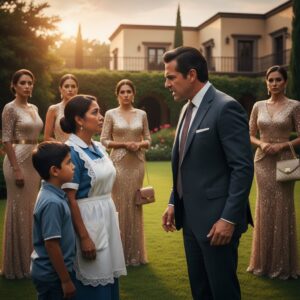 “Elige a tu nueva madre”, me ordenó mi padre mientras cinco mujeres adineradas me miraban con desprecio disfrazado de sonrisas. Yo solo era un niño roto, pero ese día le di al gran empresario la lección más grande de humildad.