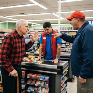 I stood in aisle 4, shaking on my cane, ready to fight a stranger twice my size to protect a kid I hardly knew. The fluorescent lights…