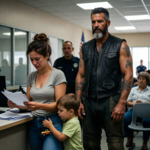 I Was Sobbing at the DMV Because I Was About to Lose My New Job Over One Missing Paper. Then, a 6-Foot Biker Stepped Up Behind Me and Refused to Move. What He Did Next Left the Entire Waiting Room Absolutely Speechless. You Won’t Believe Who Walked Through Those Doors.
