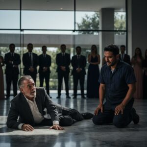 El sonido seco de su cuerpo golpeando el mármol importado detuvo la fiesta en seco. La música se cortó. Las risas se apagaron. Ahí estaba Don Rogelio….