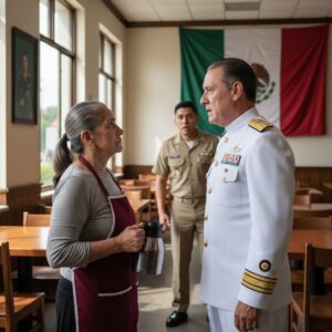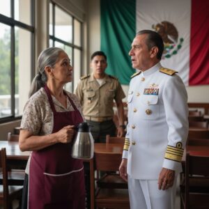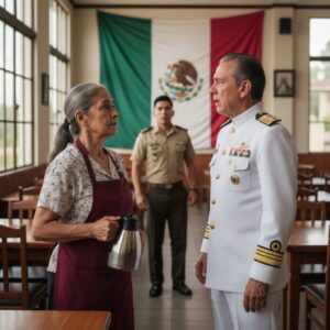 Durante tres años aguanté las burlas. “Apúrate, abuela”, me decían los nuevos oficiales con sus uniformes impecables. No sabían que mi pensión no alcanzaba para las medicinas de mi nieto ni para la renta. Yo era invisible, hasta esa mañana. El Almirante Valenzuela, el hombre más temido de la Marina, se paralizó al ver cómo le servía su taza. Sus manos, que habían firmado órdenes de guerra, empezaron a temblar. “¿Fénix Nueve?”, preguntó con la voz quebrada. El Teniente se rió pensando que era una broma, pero la lección que estaba a punto de recibir no la olvidaría jamás.