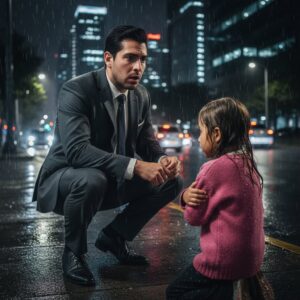 Creí que lo tenía todo con mis millones, hasta que una niña de 5 años con zapatos rotos me dio una lección de humildad en plena tormenta.