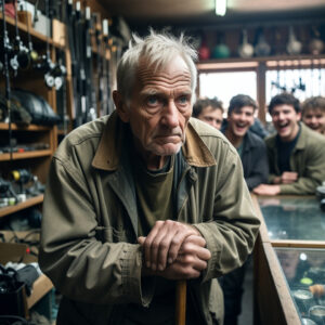 They laughed at my cane and white hair when I asked for a w**pon to defend my empty farmhouse. They thought I was just a helpless old man. Then the shop owner walked in, dropped his crate, and turned pale. What he revealed silenced the entire room.