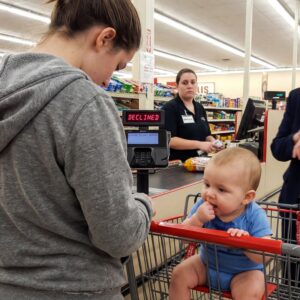 The story recounts a Tuesday evening at a Walmart in Ohio where the narrator, Justin, witnesses a struggling young mother attempting to buy essentials like diapers and…