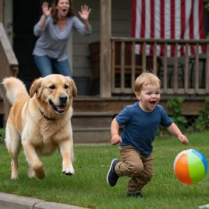 Our home security cameras captured the most terrifying ten seconds of my entire existence. My little boy was running straight toward speeding traffic, chasing a toy, and I was too far away to stop him. Just as my heart stopped beating, a blur of golden fur rushed past me. You won’t believe how this extraordinary, brave dog stopped a horrific, life-ending tr*gedy from happening right in front of my eyes.