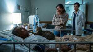 Me quedé ahí parada, con las manos entumidas por el frío del aire acondicionado y el shock de escuchar al Doctor Gutiérrez dar esa orden. “¿Déjalo quedarse?”, repetí en mi cabeza, como si fuera una frase en otro idioma que no lograba traducir. En un hospital de alta especialidad, donde te piden ponerte gel antibacterial hasta para respirar, un médico acababa de autorizar que un gato callejero, lleno de polvo y quién sabe qué bichos, usara el pecho de un paciente en coma como cama.