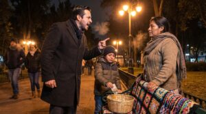 Aquella noche de diciembre, después de que aquel hombre de traje carísimo se llevara a rastras al pequeño Mateo, me quedé sola en la banca del parque. El frío me calaba hasta los huesos, pero el hielo más denso lo sentía en el pecho. Miré mi canasta de mimbre, donde las pulseras de hilo y los aretes de chaquira se mezclaban con aquel billete arrugado que el niño había dejado caer. No lo toqué. Ese billete representaba la desesperación de un alma inocente y la furia de un padre ausente. Recogí mis cosas con las manos entumecidas y emprendí el largo camino de regreso a mi humilde vivienda, una pequeña vecindad en una de las colonias más populares y olvidadas de la ciudad.