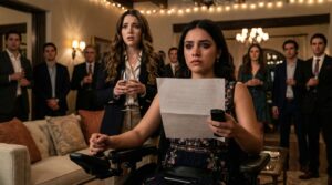 Un murmullo recorrió el salón. “¿Su casa?”, “¿Qué dice la lisiada?”, “¿Está drogada?”. Los comentarios venenosos flotaban en el aire, alimentados por el alcohol y la incredulidad.