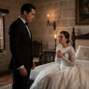 Esa noche, en la suite nupcial, me senté en la orilla de la cama, temblando. La puerta se abrió de golpe. Alejandro entró, se quitó el corbatín y me miró con unos ojos oscuros, llenos de un dolor antiguo y una furia contenida.