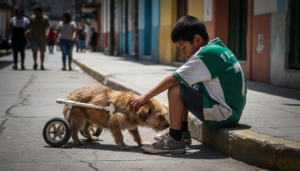 Le había armado ese aparato con unos tubos viejos y unas ruedas de un carrito de mandado que me encontré tirado. No era ingeniería alemana, pero era lo único que evitaba que mi amigo se llagara la piel arrastrándose. Sus movimientos eran torpes, cada paso era un esfuerzo titánico, jalando su propio peso con las patas delanteras. Pero no se rajaba. Iba pegadito a mi pierna, jadeando, mirándome de reojo como diciendo: “Aquí sigo, Mateo, no te me achicopales”.