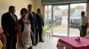 La puerta de cristal se abrió y entraron tres tipos de traje impecable. Zapatos boleados que hacían clic-clac en nuestro piso de loseta vieja. Se veían completamente fuera de lugar, como si hubieran bajado de otro planeta. Uno de ellos traía un auricular en el oído.