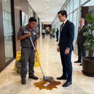 —No me voy a levantar hasta que me escuche —lloró el hombre, con la voz desgarrada—. Toda mi vida está en esa empresa. Mis empleados… hay doscientas familias que dependen de esa fábrica. Si usted no firma la fusión hoy, los bancos me embargan el lunes. Lo pierdo todo. Por favor… castigue a mi hijo. Métalo a la cárcel si quiere por agresión. Demándelo. Pero no destruya a mi gente por la estupidez de este idiota.
