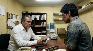 Me llevaron a una oficina de vidrios polarizados en un segundo nivel. Adentro había aire acondicionado, sillones de piel y un escritorio de caoba. Detrás estaba sentado Fausto, “El Mudo”. Era un hombre de unos sesenta años, con guayabera blanca, pero con una cicatriz brutal que le cruzaba desde el labio hasta el cuello. Su mirada era fría y calculadora.