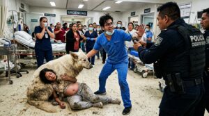 El caos estalló, pero esta vez era un caos organizado, el ballet de la medicina de urgencias que tan bien conocía. Dos camilleros llegaron corriendo. Al intentar levantar a Valeria, el perro soltó un ladrido seco, en pura advertencia, poniéndose tenso.