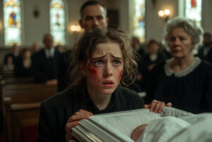 People stared, paralyzed, unsure whether to intervene in what looked like a family dispute gone horribly wrong. The priest cleared his throat nervously, looking at his bible as if the answer was written there.