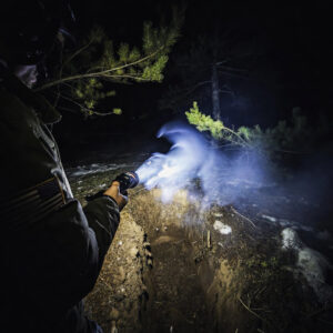 A harsh, brilliant beam of white LED light pierced the darkness, cutting a narrow path through the freezing fog that was beginning to roll in off the mountains.