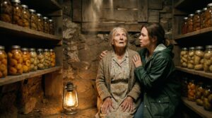 I reached out with my free hand, fumbling in the darkness toward the wooden shelves that lined the stone wall. My fingers brushed the rough wood, expecting to find nothing but splinters and glass. But then, my fingertips met the cool, smooth curve of a mason jar. It was still there. It hadn’t fallen. The shelf had held.