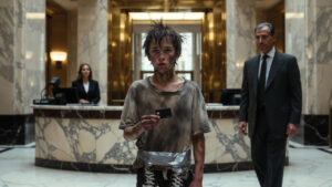 I stood there, paralyzed, one hand gripping the edge of the sleek reception desk, the other clutching the envelope in my pocket so hard my knuckles were white beneath the grime. The receptionist—whose nameplate read Vanessa V. in elegant gold script—was staring at a point just past my left ear, refusing to make eye contact anymore. It was a specific kind of invisibility I was used to. It was the way people looked at trash bags on the sidewalk: you acknowledged they were there so you didn’t trip over them, but you never actually looked at them.