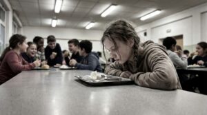 My eyes had drifted past Vanessa, past the bustling lunch line, toward the far corner of the cafeteria. It was the area near the return station, where the dirty trays were stacked and the trash cans were lined up. It was a high-traffic area for waste, smelling of discarded food and sour milk.