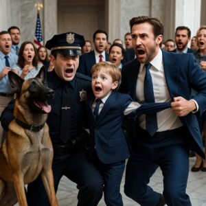 It happened in a blur of fur and screaming. The 150 people in the hall gasped and scattered as Scout broke my grip, his powerful legs propelling him toward the boy. He didn’t go for the throat, though. He went for the boy’s arm. I heard the sound of expensive fabric tearing. The foster mother, Sarah, shrieked a high-pitched, practiced sound of horror. Brad Whitaker tried to k*ck Scout, but the dog moved with surgical speed, circling the boy, barking with a frantic, desperate intensity I’d never heard before.