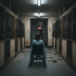 The sound of the shelter usually hit you like a physical wall—a cacophony of barks, yips, and whines. But as the girl rolled past the swinging double doors that separated the lobby from the kennels, the atmosphere shifted. Inside, the air carried the sharp bite of disinfectant mixed with damp straw, but today, it felt heavier.