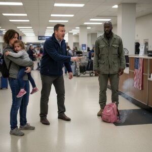 I have been a mother for six years, but absolutely nothing in this world could have prepared me for the sheer, blinding terror of seeing a stranger’s large hands wrap around my little girl’s shoulders. It happened at Gate 12 of O’Hare International Airport, right in the middle of a miserable, stormy Tuesday evening. The flight had been delayed three times, and the boarding area was a claustrophobic sea of frustrated passengers.