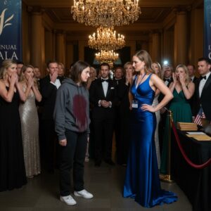 I looked down at the dark, spreading stain on my chest. It was cold first, soaking through the thick cotton of my charcoal hoodie, and then it immediately turned sticky. The smell of fermented grapes and expensive oak hit my nose, a stark contrast to the sterile, perfumed air of the museum’s grand entryway. For half a second, the entire entrance went completely, uncomfortably dead silent. It was the kind of silence that sucks the oxygen right out of the room. You could hear the faint, elegant notes of the string quartet drifting from the main ballroom, completely oblivious to the ugly scene unfolding at the velvet rope.