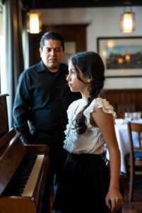 Miré a ese hombre. Hace media hora era el villano de mi historia. Ahora me estaba ofreciendo un futuro. Miré el piano negro en la esquina. Parecía sonreírme, brillando bajo la luz. Pensé en mi papá. En cómo le hubiera gustado verme ahí, comiendo como reina, con un trabajo de pianista. “Agárralo, mija”, escuché su voz en el viento del aire acondicionado. “Agárralo y no lo sueltes”.