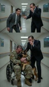 For a terrifying minute, the only sound in that massive lobby was the quiet sobbing of the billionaire owner and the wounded veteran, bound together by the survival of a boy thousands of miles away, all thanks to the dog sitting between them.
