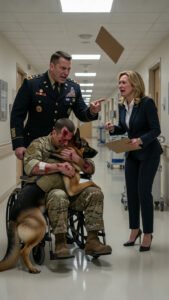 Her name tag read Brenda – Chief Administrator. She was staring at Rex, my military K9, with a look of pure disgust. Rex whimpered, his nose twitching frantically. He could feel Mark’s scent through the hospital doors. Mark, my best friend and Rex’s handler, had lost both his legs in combat, and they hadn’t seen each other in six agonizing weeks. I tightened my grip on the leash, my heart hammering against my ribs.