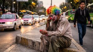 Chispita se quedó callado, encogido en el asiento. Se veía ridículamente pequeño a pesar de ser un hombre adulto. La peluca de colores neón chocaba contra el techo gris del auto. —Me llamo Rogelio —dijo de pronto, en voz baja. Volteé de reojo. Se había quitado la peluca. Debajo, tenía el pelo negro, corto, pegado al cráneo por el sudor, con algunas canas prematuras. Ya no se veía como “Chispita”. Se veía como Rogelio. Un papá asustado. —Mucho gusto, Rogelio. Soy Beto. —Mucho gusto, Don Beto. Oiga… gracias por no asquearse de mí. —No digas m*madas, Rogelio. —Es que la gente… —hizo una pausa y miró por la ventana, hacia los otros coches donde la gente iba en su mundo, escuchando música, revisando el celular—. La gente nos ve como parte del paisaje, ¿sabe? Como si fuéramos un poste o un bache. O peor, como una molestia. “Ahí viene el payaso otra vez, sube el vidrio”. “No le des dinero que se lo gasta en vicio”.