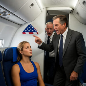 Karen’s posture immediately transformed. The vicious, snarling beast that had just thrown water on a disabled veteran melted away, replaced by a sickeningly sweet, sycophantic caricature of a corporate manager. She smoothed down her skirt, her lips curling into a triumphant, predatory smirk.