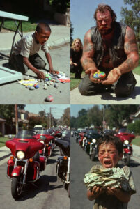 Conversely, Big Mike and his nineteen brothers were the exact opposite. They were loud, intimidating, and covered in tattoos that marked them as outsiders. They rode heavy, dangerous machines and wore the scars of wars that polite society preferred to ignore. By the superficial metrics of suburban America, they were the “bad guys.” They were the people you locked your doors against. Yet, they were the only ones who possessed the moral clarity to see the situation for what it truly was. They didn’t see a nuisance; they saw a hard-working kid trying to protect his family. They didn’t see an illegal business; they saw a hustle born of love.