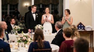We got to the reception. The champagne was flowing. The room was beautiful. Everyone clinked their glasses for the speeches. The best man went first, telling jokes about Mike’s college days. Then, it was my turn.