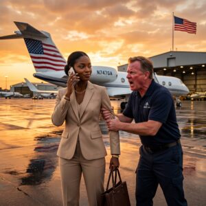 His fingers dug into my arm hard enough to leave a bruise. “You people always think you can just walk into places like this,” the ground crew…