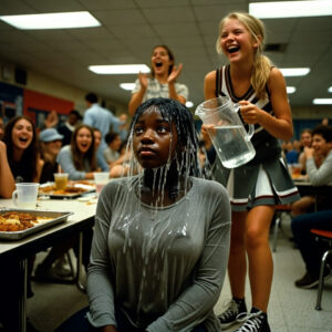 The ice water didn’t just feel cold; it felt heavy, like a physical weight pinning me to the plastic cafeteria chair while the world turned into a blurred gallery of laughing faces and flashing phone screens. I sat there shivering, my cheap thrift-store cotton sweater completely soaked through to my skin.