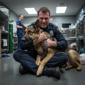 I brought my fierce K-9 partner into the clinic for his final moments, his body completely shutting down. But right as the needle approached, he pulled me into a desperate hug, and the vet suddenly froze in pure horror.
