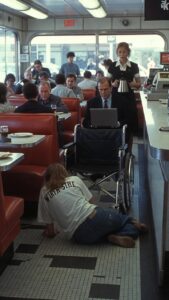 My wheelchair had hit the floor with a crash that silenced the entire diner. My library books scattered everywhere, and my medical brace cracked hard against the unforgiving tile. The three boys standing over me weren’t just chuckling; they were laughing with cruel, deliberate amusement. I’m 16, disabled, and I had just been *ssaulted in front of 40 witnesses who did absolutely nothing. The sound I made when I fell wasn’t a scream. It was a startled gasp of pain mixed with pure humiliation, the sound of someone who had stopped expecting help.