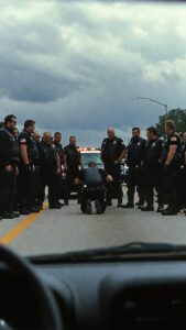 To the passing drivers locked safely inside their air-conditioned vehicles, the optics of the situation were still explosive. They saw forty men in heavy leather surrounding a lone cop. It looked like a nightmare unfolding in real-time. It looked like an ambush.